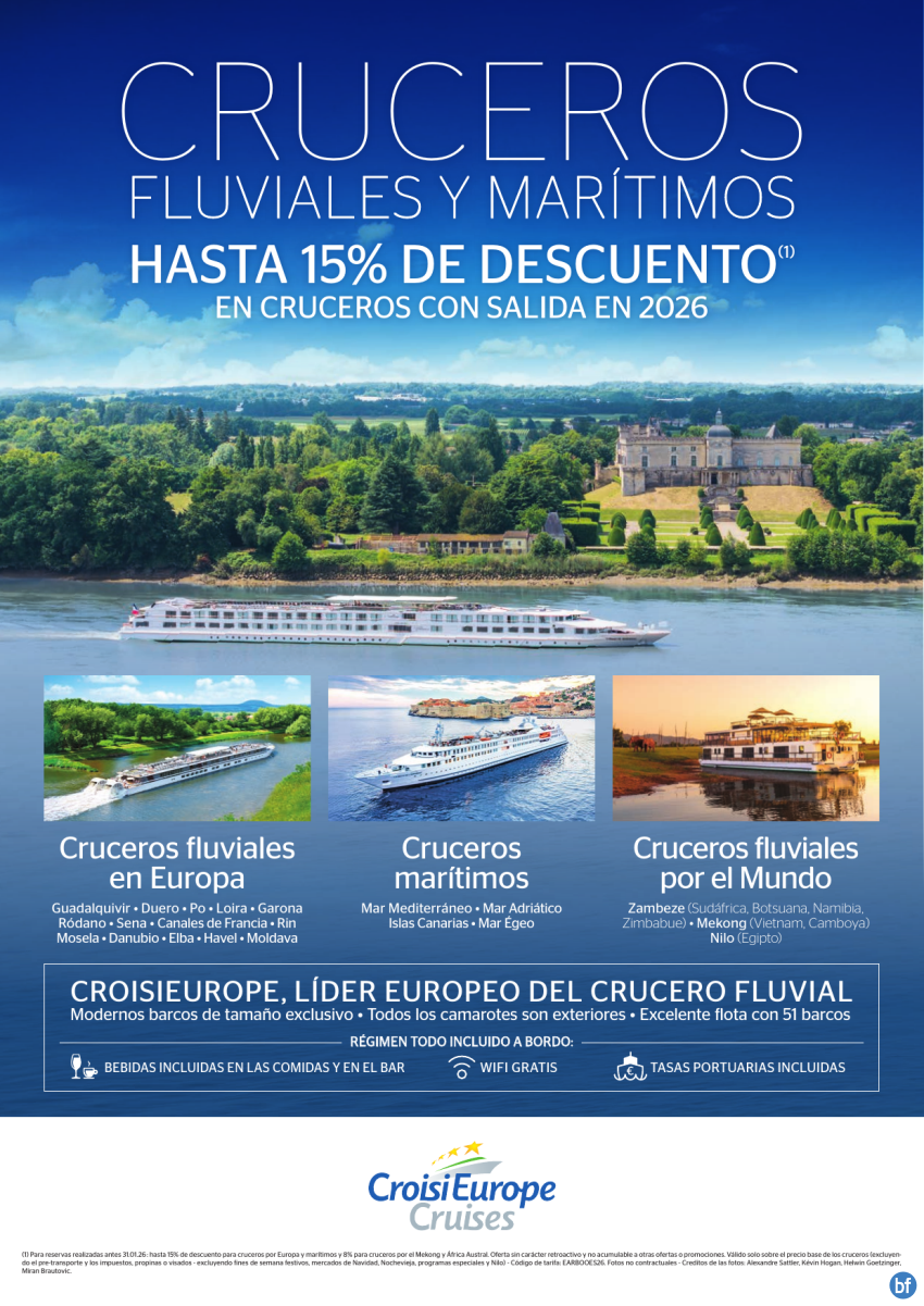 Hasta 15% DESCUENTO salidas 2026 - Cruceros fluviales y marítimos CroisiEurope