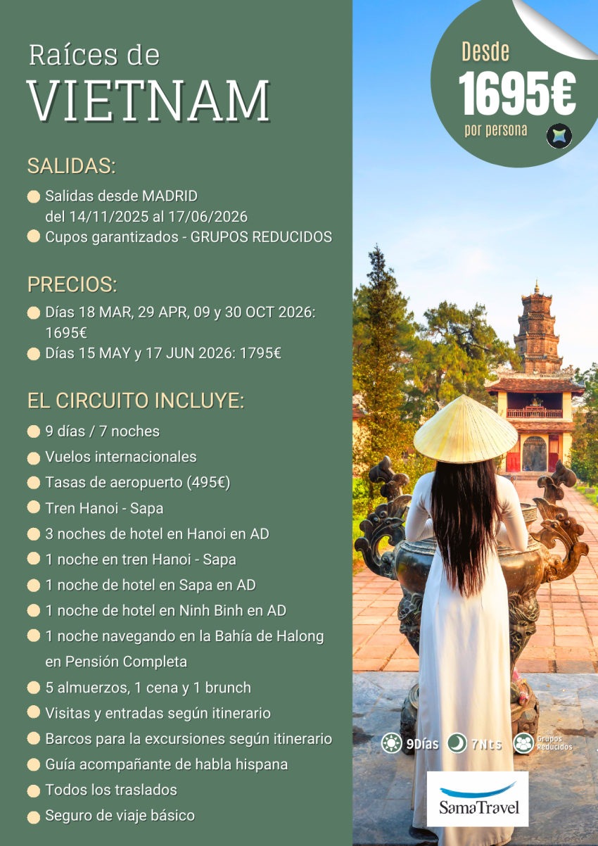 "Raíces de VIETNAM y Sapa": circuito 9 días - cupos garantizados [Desde MAD] Mar - 05dec26 **desde 1.695€**