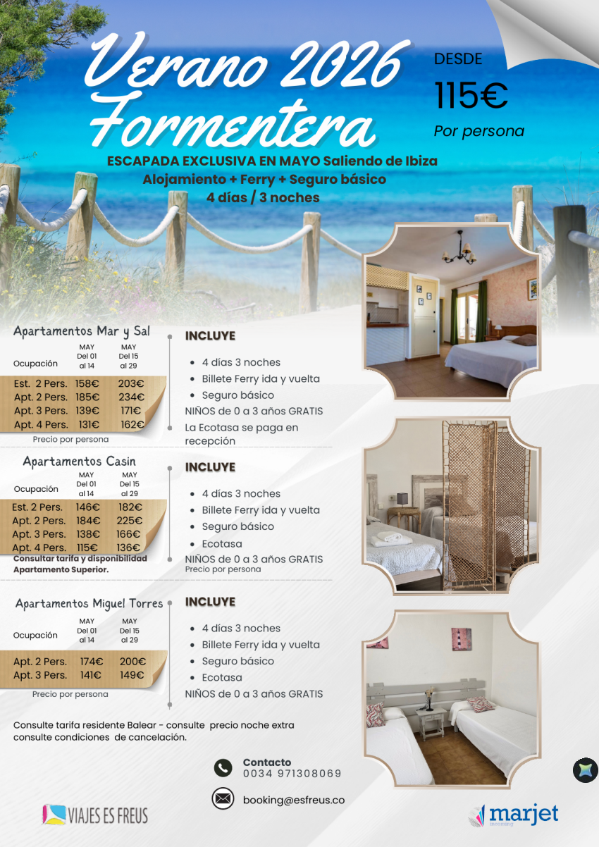 Escapada Formentera Mayo desde 115€ 4 días / 3 noches